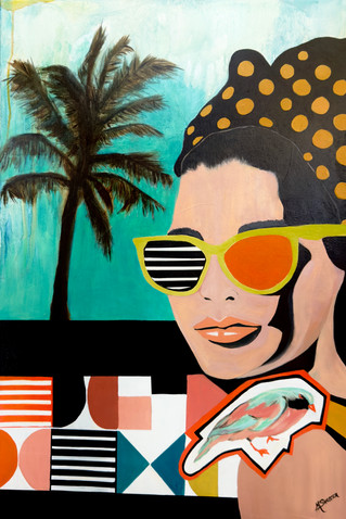 Framed 37" x 25" Multimedia Oil on Canvas in a floating frame
